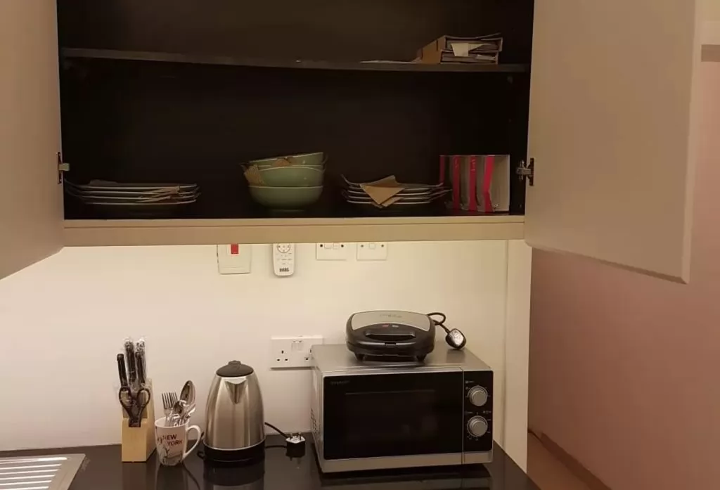 Yıllık 40.000 riyal kiraya verilen mobilyalı aile dairesi, birinci kattaki daire bir yatak odası, bir salon, bir mutfak ve bir banyodan oluşmaktadır, daire tamamen mobilyalı ve her şey. Mobilyalar mükemmel durumda ve klimaların yanı sıra her türlü elektrikli aletle donatılmış bir mutfak var.